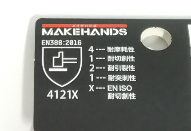 | ENISO耐切創性 | A~Fまで、Fが最高 (ENISO耐切創性とは、保護具の切れにくさを示す性能評価のこと) |